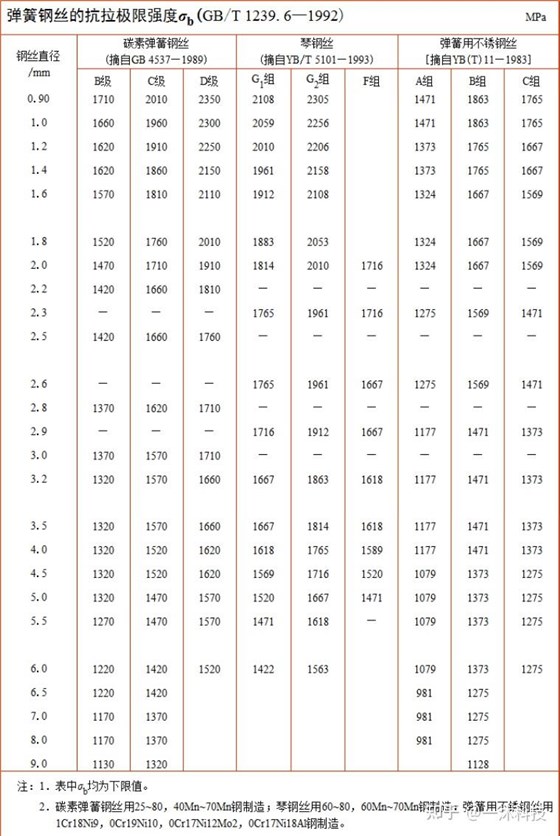 因此我們還需要計(jì)算出彈簧的最大許用壓力F許,許用壓力與彈簧的載荷方式(低頻,中頻,高頻使用)與線徑有關(guān),如下